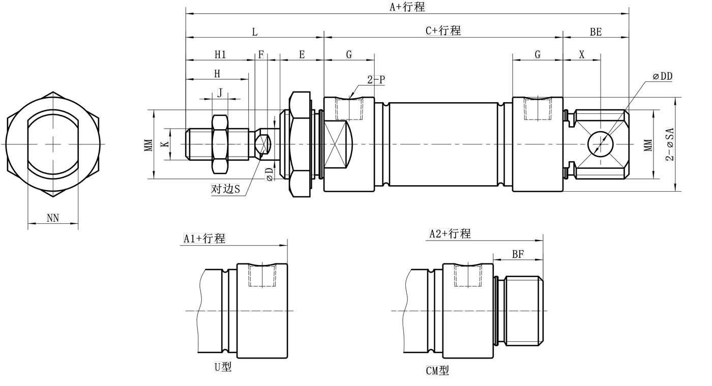 | 缸径 | | 行程 | 最大行程 | 容许行程 |