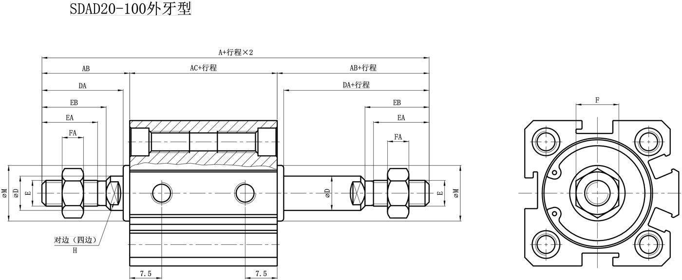 | 25 32 40 50 63 | 复动 | 附磁 | 5 10 15 20 25 30 35 40 45 50 55 60 65 70 75 80 85 90 100 110 120 | 120 |