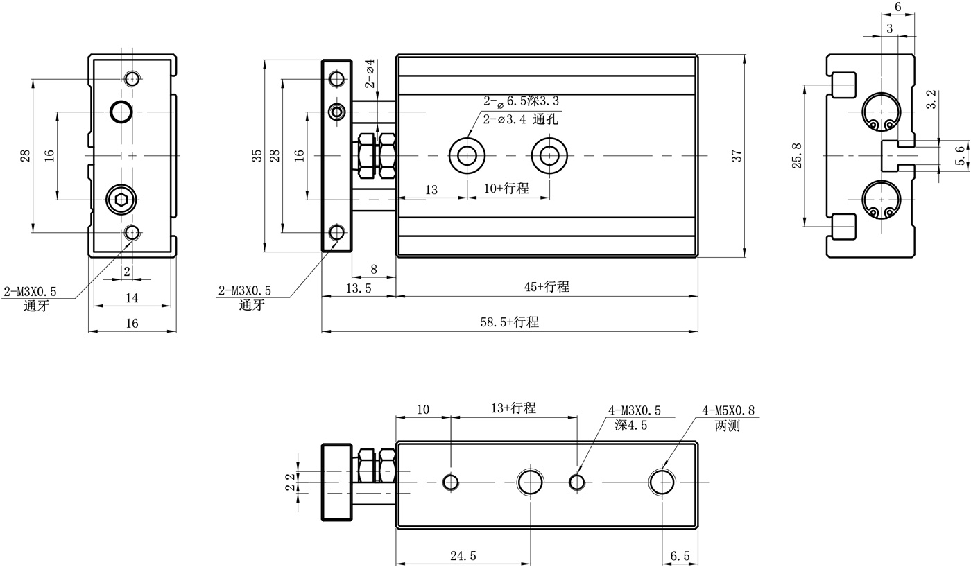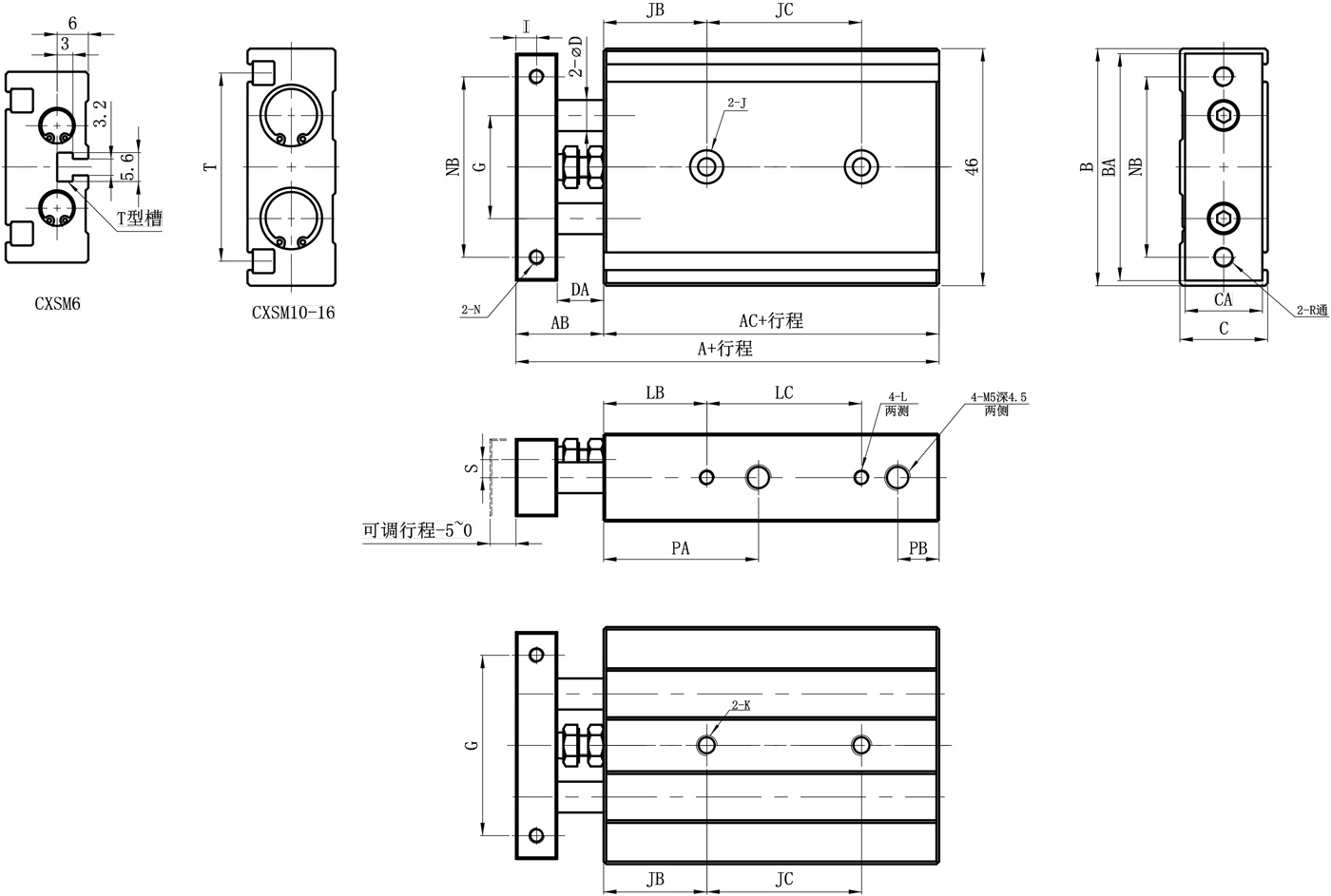 CXSM:双轴气缸(复动型);接口螺纹代码:空白:G螺纹(M5×0.8)、P:PT螺纹、N:NPT螺纹