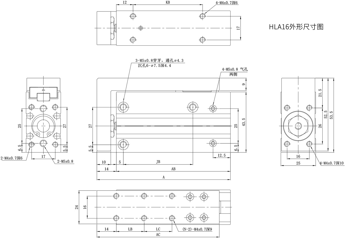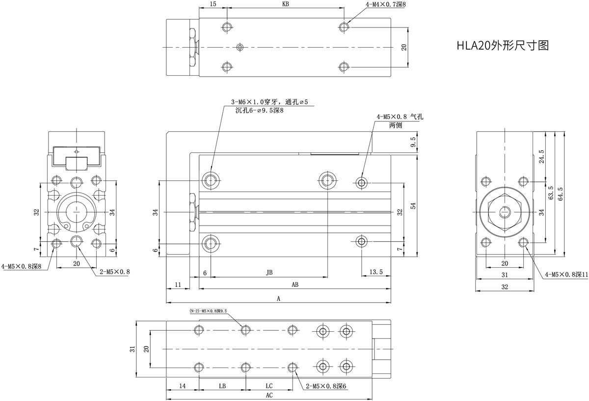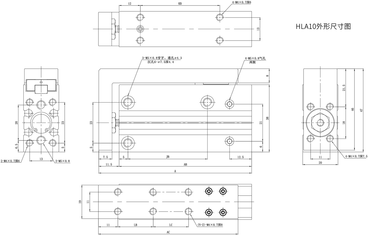 HLA:侧轨型精密滑台气缸;磁石代号:附磁石;